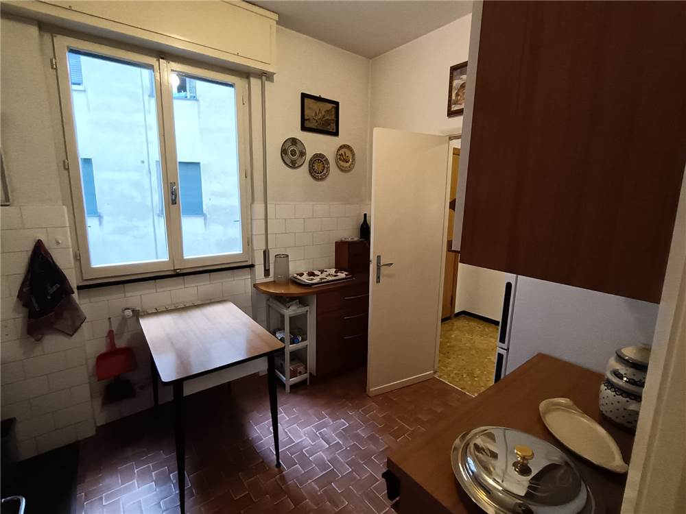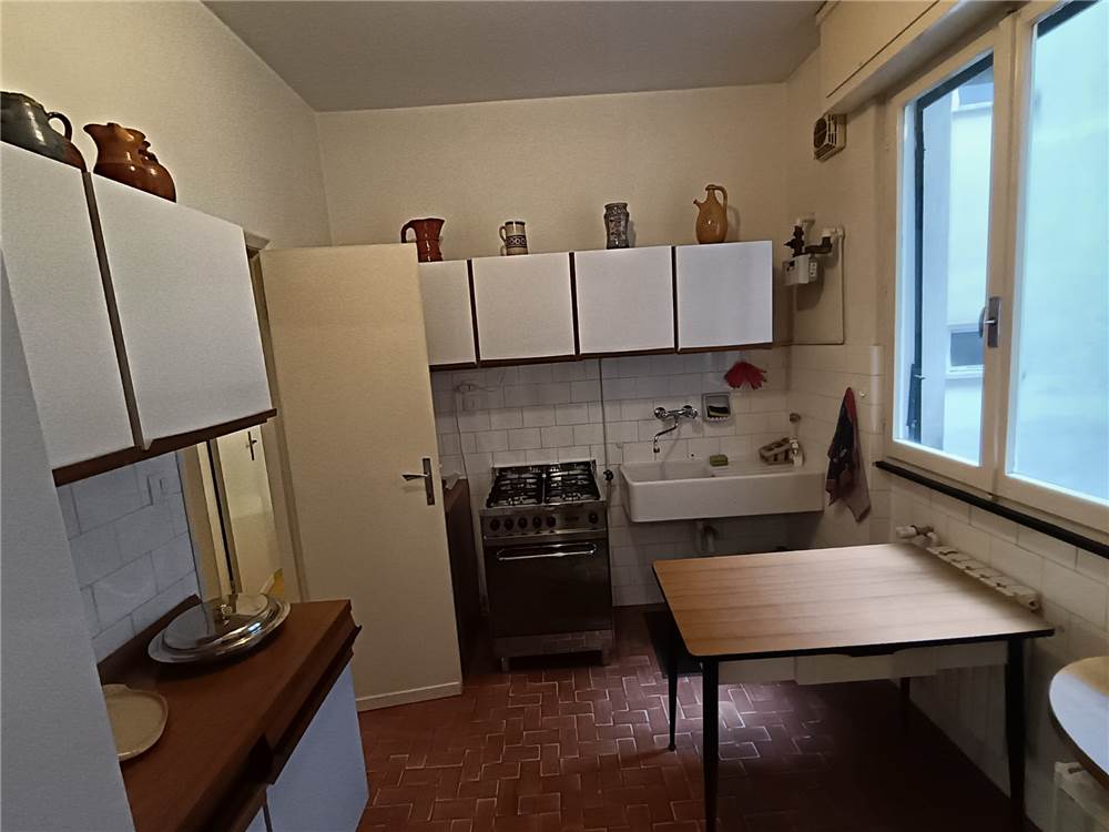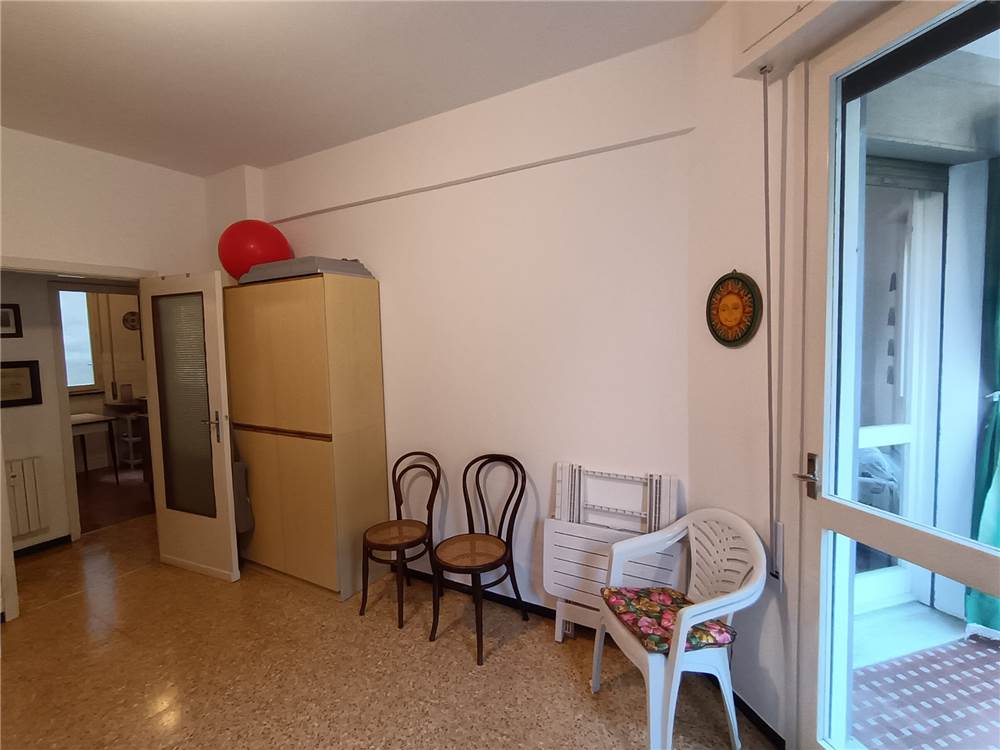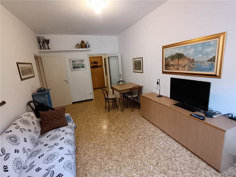 Rapallo - Via F.lli Betti - In zona completamente pianeggiante proponiamo bilocale inserito in contesto molto silenzioso con affaccio su zona verde. L'immobile è situato al terzo piano di uno stabile in buone condizioni generali e dotato di ascensore. L'alloggio è in parte da rinnovare perché ha ancora le caratteristiche originarie, ma è già abitabile e funzionale. E' composto da: ingresso, cucina abitabile, spazioso soggiorno, disimpegno che conduce alla zona notte con camera da letto e bagno con vasca. Sala e camera da letto dispongono ognuna di una grande finestra e portafinestra con accesso al balcone quadrato. Viene eventualmente venduto con il mobilio compresi gli elettrodomestici in condizioni pari al nuovo. A pochi passi è presente una zona pedonale che porta al Castello di Rapallo e al lungomare distante dall'alloggio circa 500 metri.