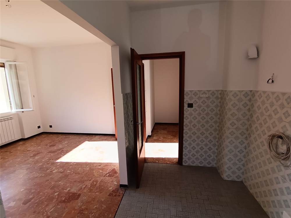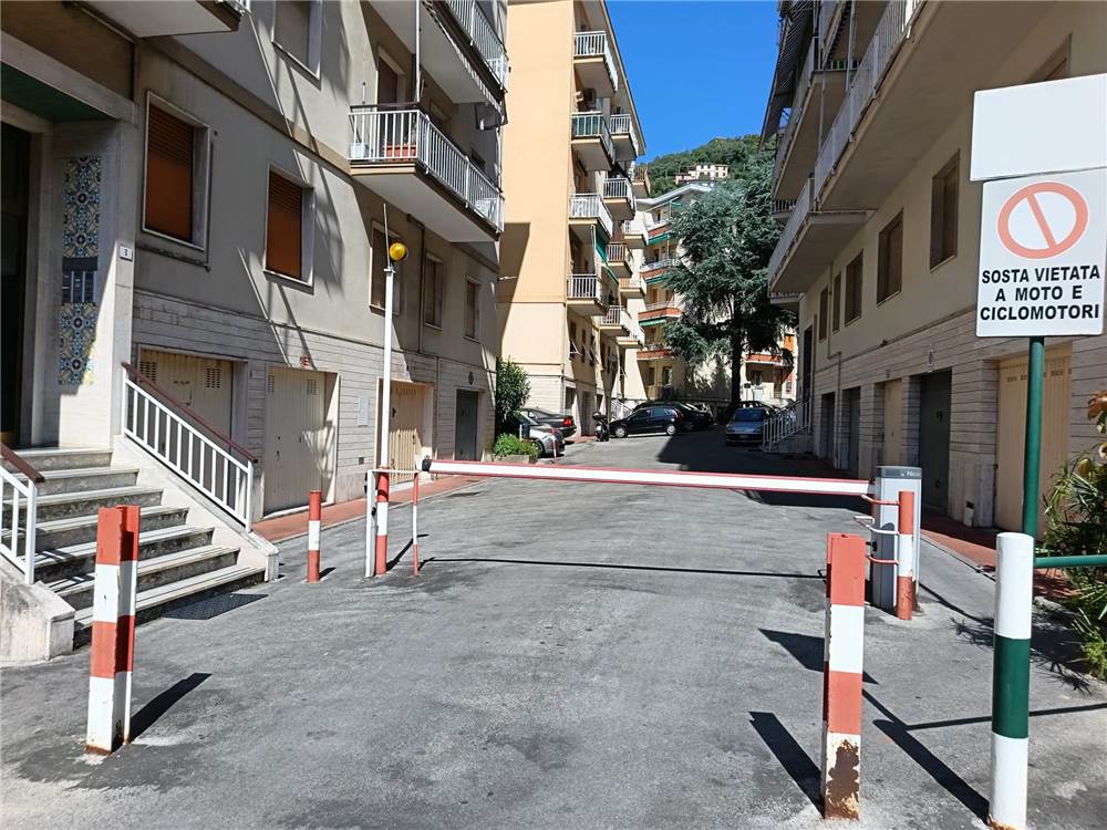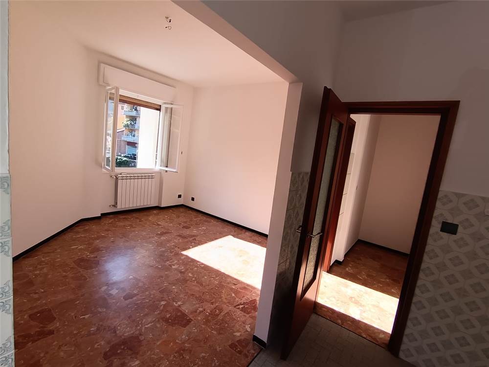 Rapallo- Via Di Sciorno - In zona pianeggiante a circa 10 minuti a piedi dal centro, bilocale da riordinare composto da: ingresso in corridoio, cucina a vista sul soggiorno, camera matrimoniale, bagno con finestra e piccolo ripostiglio. Gode di buona luminosità grazie all'esposizione a sud-est. Lo stabile, di cui fa parte l'alloggio è in ottime condizioni ed è posizionato all'interno di un complesso con accesso regolato da sbarra elettrica con posti auto/moto condominiali. La zona è silenziosa e i principali servizi sono vicini.